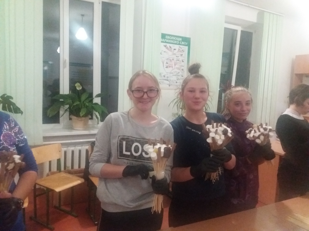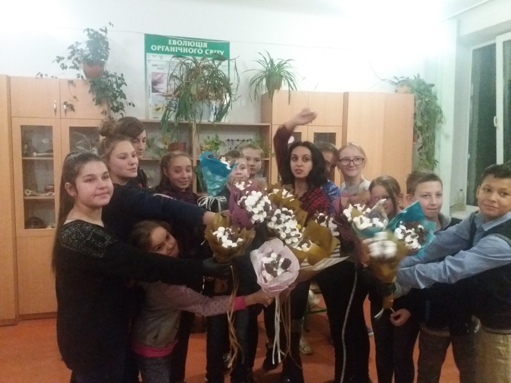 20 листопада у нашу школу знову завітали гості. Цього разу це засновник благодійної організації «Дарунок» Ясинчук Марія разом з Іриною Борболь. Марія та Іра разом з учнями 5-10 класів провели майстер-клас зі створення «солодких букетів» з цукерок. Кожен учень закінчивши виготовлення букета зміг забрати його з собою та почастувати своїх однокласників.
