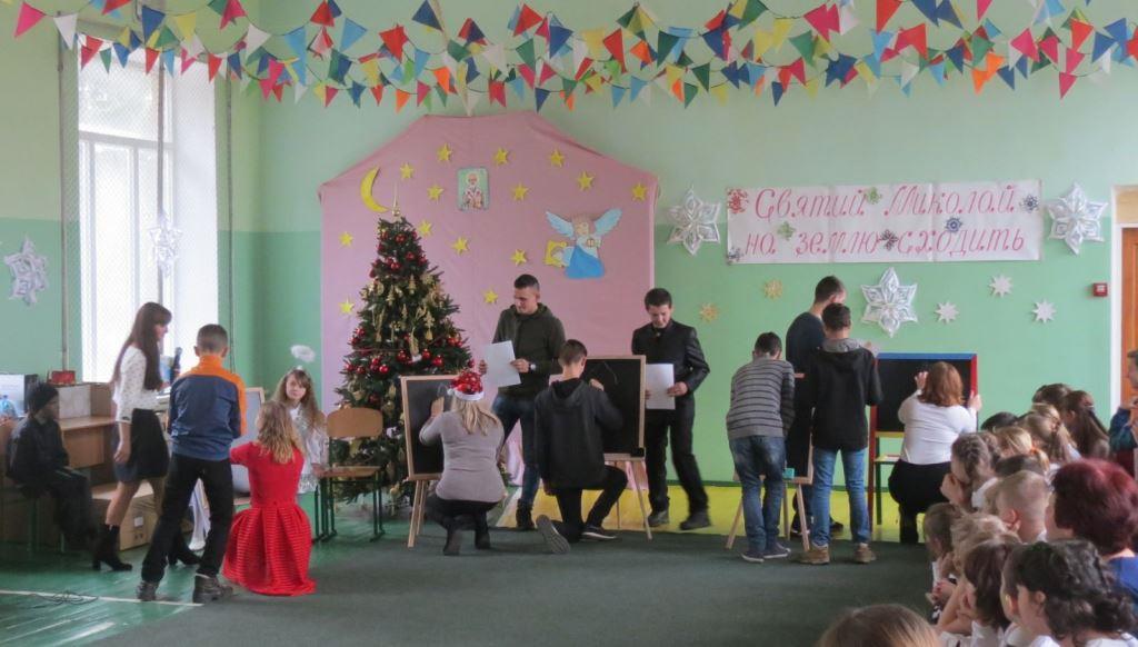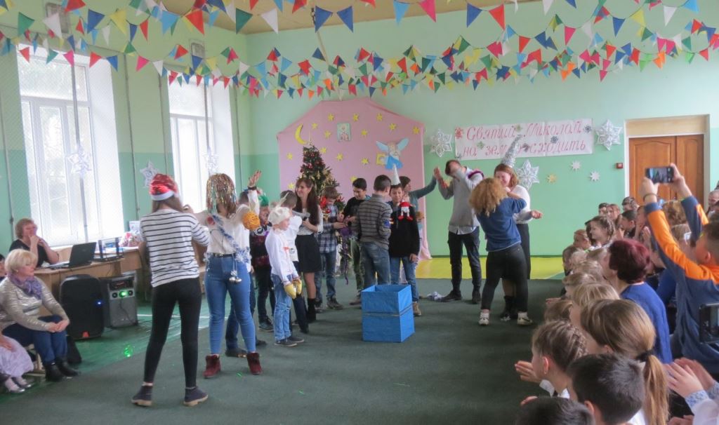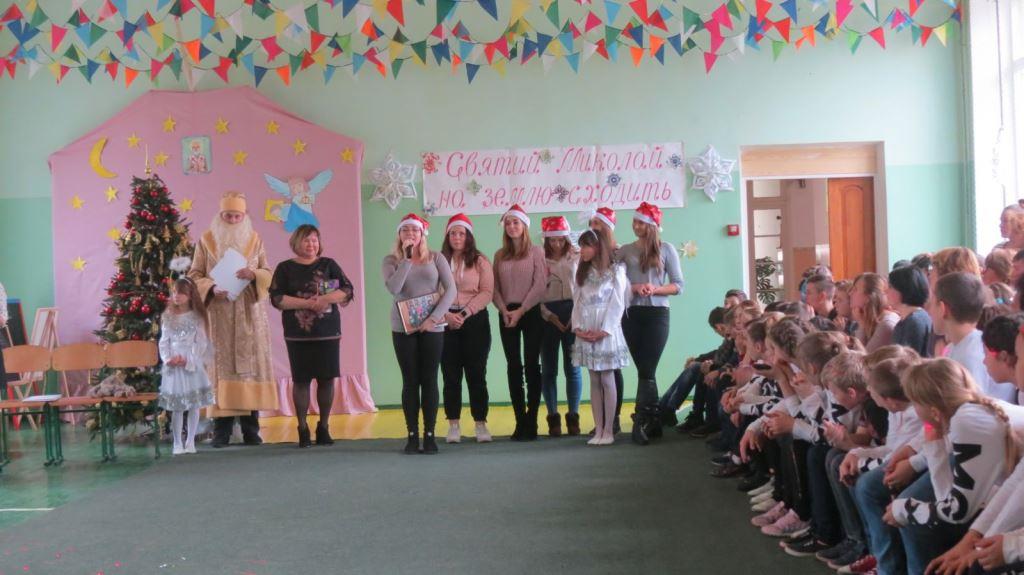 На захід традиційно завітали друзі нашої школи.  Вони разом з учнями  брали  участь у конкурсах, відгадували загадки, співали, танцювали, малювали. Свято пройшло дуже весело! За традицією Святий Миколай прийшов з подарунками. Роздаючи солодощі, він бажав дітям бути чемними, робити добро, не ображати нікого, любити свій народ і Україну. Не залишилися без подарунків і наші гості, вони отримали від Миколая ялинкові прикраси, виготовлені нашими дітьми.