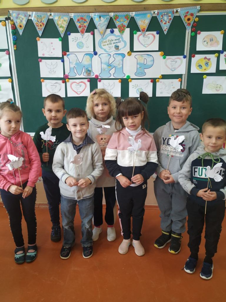 Традиційно21 вересня в Україні та світі відзначають Міжнародний день миру. Сьогодні мир в Україні не є абстрактним бажанням, це усвідомлена мета, адже за мирне існування, за право жити у власній державі триває боротьба на сході нашої країни. І найвищу цінність миру, який є запорукою щасливого життя, сьогодні відчула кожна українська родина. Саме тому, з метою формування глибокого розуміння питань, пов’язаних із миром, розширення знань учнів про важливість миру на землі, виховання гуманізму, патріотизму, любові до свого народу, поваги до людей різних національностей у Тучинській спеціальній школі відбулася акція з виготовлення паперових голубів “І білі голуби у небі синім”. Діти щиро висловлювали побажаннями миру та злагоди і закликали всіх людей вчитися творити добро на Землі й жити у мирі та злагоді.