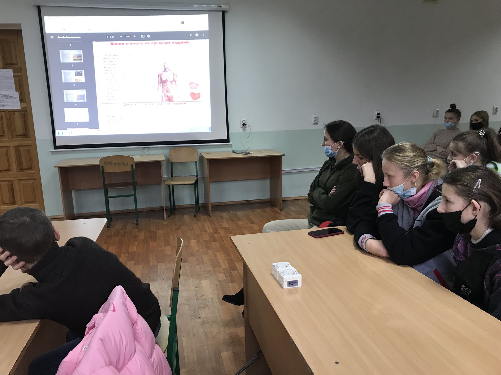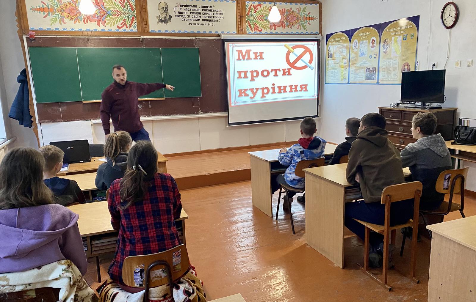 Для учнів 8-10 класів була організована та проведена зустріч з лікарем Мулярем Олександром Станіславовичем на тему « Не спалюй своє майбутнє». У ході зустрічі діти прослухали змістовну розповідь про шкідливість тютюнопаління та переглянули відео «Про шкідливий вплив тютюнового диму на організм людини».