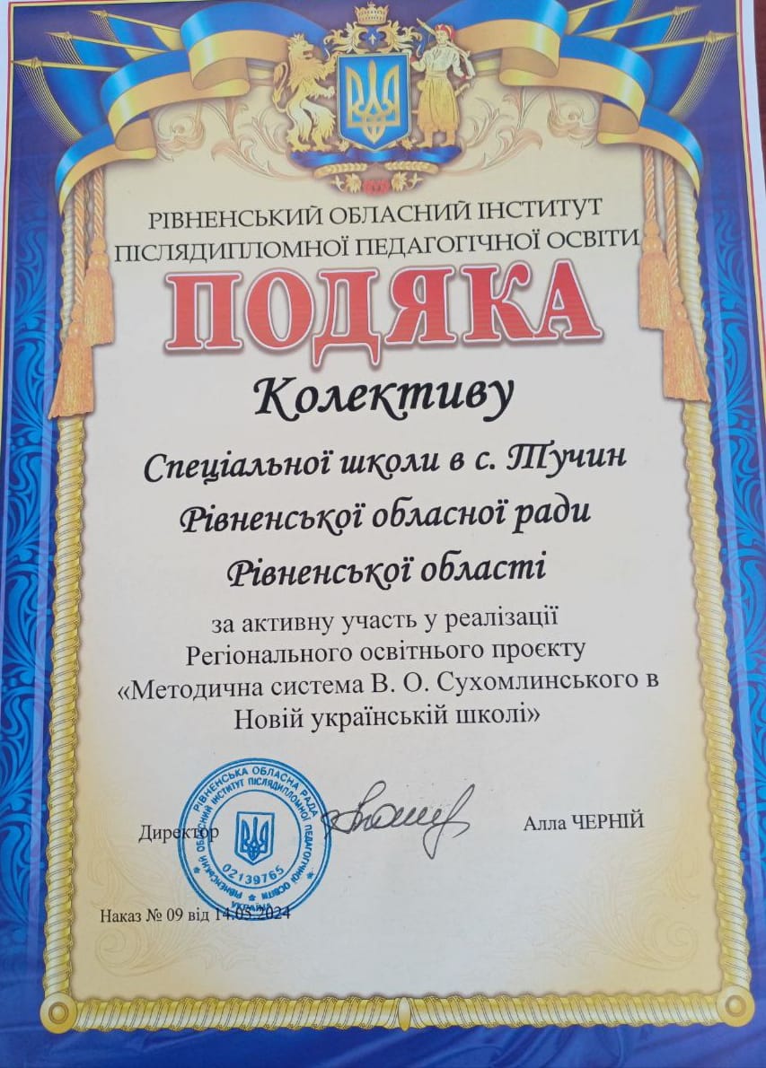 Праця колективу школи була відзначена Подякою Рівненський обласний інститут післядипломної педагогічної освіти.