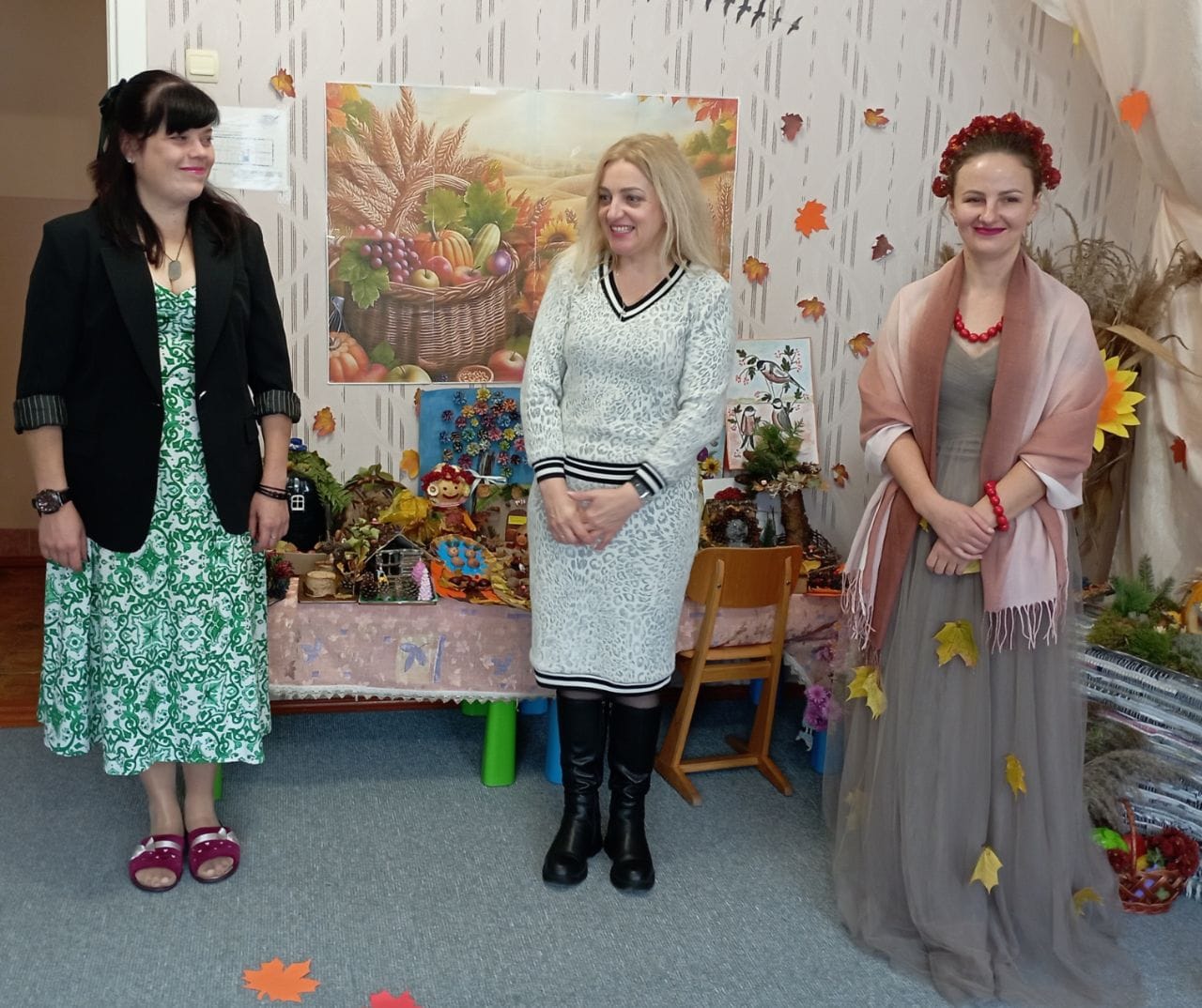 Зала була прикрашена яскравими осінніми декораціями та виробами з природних матеріалів, які малеча підготувала разом зі своїми батьками.