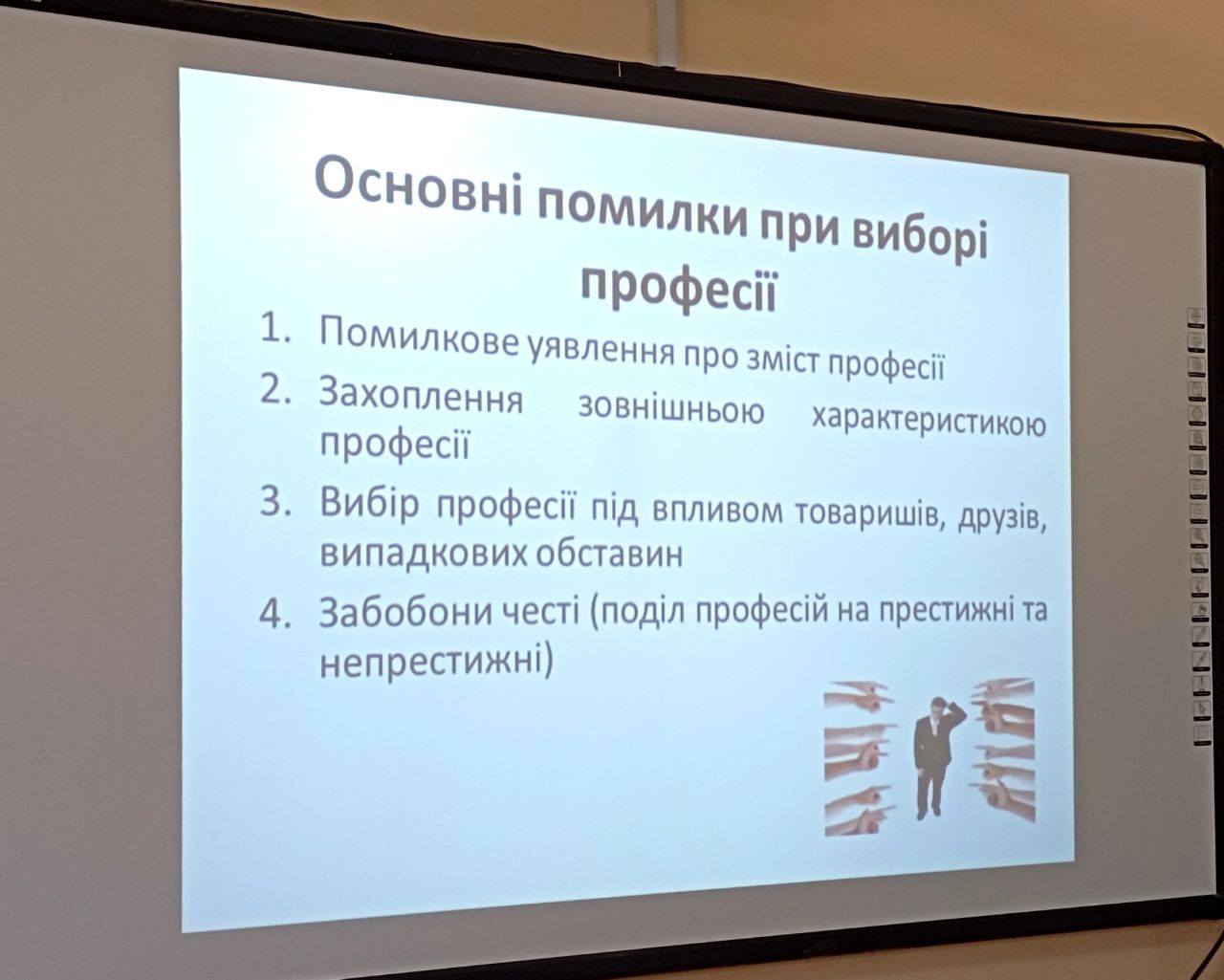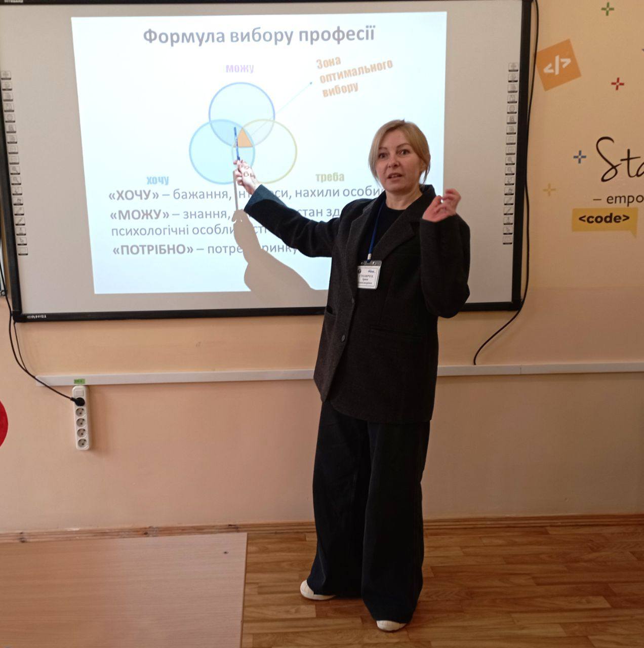 Під час зустрічі школярі дізналися про актуальні професії на ринку праці, важливість усвідомленого вибору майбутнього фаху та отримали поради, як визначити власні здібності й інтереси.